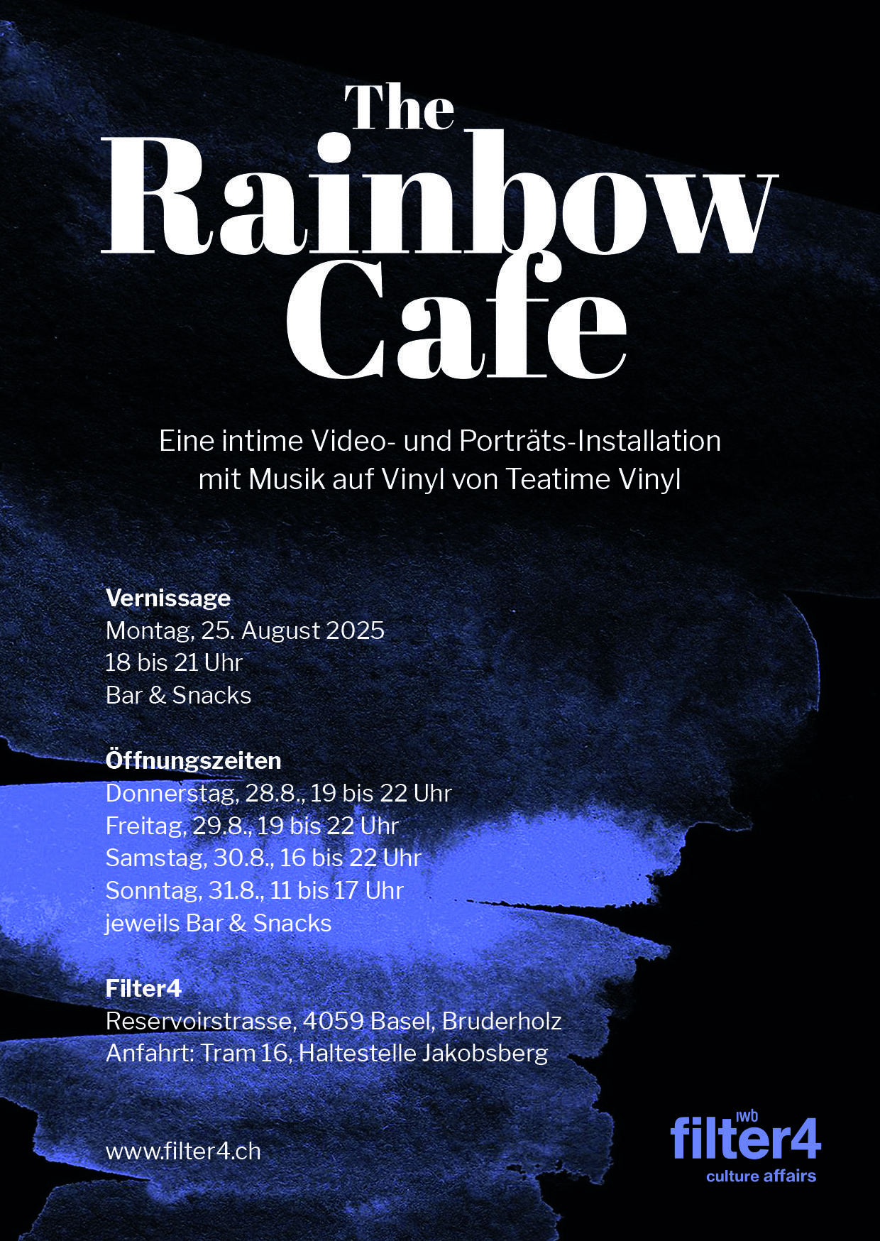 Vernissage Montag, 25. August 2025 18 bis 21 Uhr Bar & Snacks Öffnungszeiten Donnerstag, 28.8., 19 bis 22 Uhr Freitag, 29.8., 19 bis 22 Uhr Samstag, 30.8., 16 bis 22 Uhr Sonntag, 31.8., 11 bis 17 Uhr jeweils Bar & Snacks
